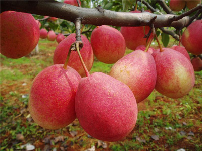 品種優勢:早酥紅梨,皮薄而脆,果心很小,可食率高,果肉瑩白,質細,脆而爽口,石細胞極少,汁特多,味甜微酸,可溶性固形物含量14%,含糖量12.2%,品質極上。表現生長茁壯,抗性強,結果早,果實高樁形,個大,成熟早,品格優質。果中含有天然珍貴的紅色素和紫色素!紅色素紫色素具有天然的健康美容等功效!具有獨特的抑制癌細胞生長和抗癌等功極好的觀賞價值,生態觀光果園的首選品種!